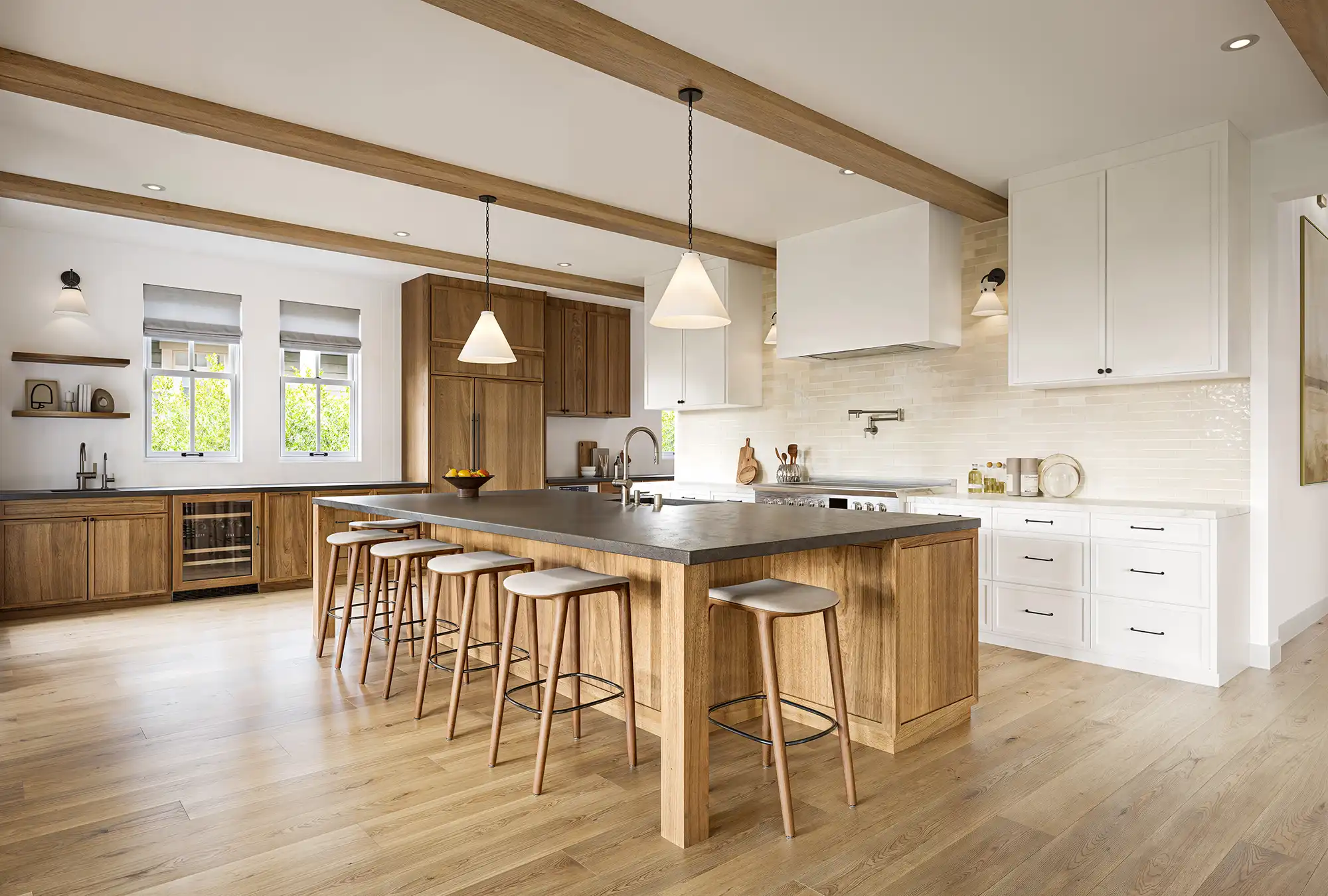 Reef is a striking Coast Island Contemporary home set within an exclusive collection of nine new coastal residences. With five bedrooms, a home office, spacious loft, and California room, the layout is designed for comfort and connection. A rich blend of creamy cabinetry, bold black accents, and warm wood tones brings a moody, design-forward sensibility to the interiors. Custom designer finishes, dramatic stone surfaces, and top-tier appliances enhance every detail of this modern coastal sanctuary.